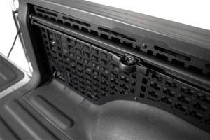 Our Bed Side Molle Panels optimize the cargo storage capabilities of your truck bed. Engineered for off-road durability and keeping your gear secure, these storage panels are compatible with various attachment systems. You can secure your gear to these panels with molle mounts, straps, bolts, or tie-down straps. Choose from several configurations for the driver side, passenger side, or both sides to maximize your vertical storage - and leave the bed floor clear for larger cargo. Our panels are unrivaled in their fitment and closely follow the contours of the truck bed. Constructed from American steel and finished in a durable 2-stage hammer black powder coat, these molle panels add secure storage for essentials like shovels, hi-lift jacks, fluid tanks, recovery gear, and more. The panels mount to the bed at several points, ensuring rigidity on rough terrain. Even so, they are easily removable when needed. As always, these are fully bolt-on and Made in America. This modular system allows for you to run 4 configurations on driver side, passenger side, or both: Front Bed Panel Only / Rear Bed Panel Only / Front & Rear Bed Panels Only / Front, Center, & Rear Bed Panels for Full Bed Length Coverage ** Please Note: Center panel cannot be installed on its own. It requires BOTH the front and rear panels for installation. The Center panel can be installed to both the Driver Side or Passenger Side of the bed.** Please Note: Only fits the 5.7' length bed.