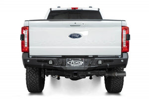 The Bomber Rear Bumper was designed to conform to the body lines of the 2023+ Super Duty. Two 3-inch cube lights can be mounted in the bumper for supplemental rear lighting. Zip tie slots were included on the interior of the bumper for wire management. Recovery options include 1-inch think clevis mounts that take 3/4-inch D-ring shackles with 7/8-inch pins. The Bomber retains all OEM features & functionality. This includes the hitch receiver, trailer harness, and the license plate lights. Specially designed cutouts allow the back-up sensors to retain full functionality with our bumper. As always, this is fully bolt-on and Made in America.