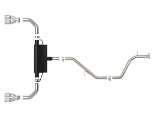 This system produced gains of up to +9 HP and +10 lbs. x Ft. TQ., as measured on our in-house dyno. This cat-back exhaust system is constructed of 2 IN - 2-1/2 IN mandrel-bent 304 stainless steel tubing for maximum strength and durability. This system features a high-flow stainless steel muffler, producing a mild sound. Muffler finish may vary.Finishing off this exhaust system are dual 3 IN diameter polished 304 stainless steel clamp-on exhaust tips. The tips features a laser etched Takeda logo for a unique style. This system produces a mild sound unleashing all available horsepower and torque. Utilizing a factory style flange and hangers this system is a direct bolt-on system, which requires no cutting or modifications for a hassle-free installation. Utilizing state-of-the-art computer-aided design technology, this exhaust system is designed for custom, high tolerance factory fitment. 100% MIG-Welded for race-proven strength and durability.
