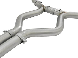 This cat-back exhaust system is constructed of 3 IN - 2-1/2 IN mandrel-bent brushed finished 304 stainless steel tubing for maximum strength and durability. This system features high-flow 304 stainless steel mufflers, producing a deep sound. Finishing off this exhaust system are quad 3-1/2 IN diameter polished 304 stainless steel clamp-on exhaust tips. The tips features a laser etched aFe POWER logo for a unique style. This system produces a deep sound unleashing all available horsepower and torque. Utilizing a factory style flange and hangers this system is a direct bolt-on system, which requires no cutting or modifications for a hassle-free installation. This cat-back exhaust system uses a heavy duty flex pipe with an internal interlock liner for added strength and durability. A mitered merge x-pipe is used to balance and evenly distribute exhaust pulses traveling through the exhaust system, minimizing exhaust drone and maximizing scavenging. This system incorporates factory style exhaust valves which use the factory exhaust valve motors (not included). The valves help regulate, direct and control the flow of exhaust gases by opening, closing, or partially obstructing passageways depending on throttle position for maximum performance. State-of-the-art computer-aided design technology is utilized for precise vehicle fitment. 100% TIG-Welded for race-proven strength and durability.