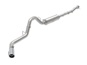 This cat-back exhaust system is constructed of 4" mandrel-bent 409 stainless steel tubing for maximum strength and durability. This system features a high-flow 409 stainless steel muffler, producing a deep sound. Finishing off this exhaust system is a 5" diameter polished 409 stainless steel intercooled clamp-on exhaust tip. The tip features an aFe POWER logo plate riveted on for a unique style. This system produces a deep sound unleashing all available horsepower and torque. Utilizing a factory style flange and hangers this system is a direct bolt-on system, which requires no cutting or modifications for a hassle-free installation. Utilizing state-of-the-art computer-aided design technology, this exhaust system is designed for custom, high tolerance factory fitment. 100% MIG-Welded for race-proven strength and durability.