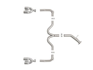 This axle-back exhaust system is constructed of 3" - 2-1/2" mandrel-bent brushed finished 304 stainless steel tubing for maximum strength and durability. Finishing off this exhaust system are dual 4" diameter 304 stainless steel clamp-on exhaust tips. This system produces a deep sound unleashing all available horsepower and torque. Utilizing a factory style flange and hangers this system is a direct bolt-on system, which requires no cutting or modifications for a hassle-free installation. A mitered merge collector is used to decrease turbulence and increase exhaust velocity resulting in increased horsepower, torque and improved throttle response. Utilizing state-of-the-art computer-aided design technology, this exhaust system is designed for custom, high tolerance factory fitment. 100% MIG-Welded for race-proven strength and durability.