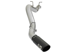 Simple Installation All systems use factory mounting locations providing stability and hassle-free installation. Leak-Free Seal: High quality band clamps are included for a complete 360 degree sealing surface. OE Fit: OE-style bayonet hangers are used to maintain a stable pipe location during high vibration and high heat conditions. The bayonet tip holds the hanger bushing in place for an OE-style fit that does not change with time. Flow and Performance: This Mach FORCE-Xp exhaust system is constructed of 4" mandrel-bent aluminized tubing for maximum flow. Smooth transition bends allow for low turbulence, increasing horsepower, torque and lowering EGT's. 6" Diameter Black Intercooled Tip: Finishing off the exhaust is a 6" diameter, black, stainless steel slash cut tip with intercooling vents designed to reduce exhaust gas temperatures at the tailpipe. A unique stainless steel laser-cut aFe Power logo plate is riveted on for an aggressive style.