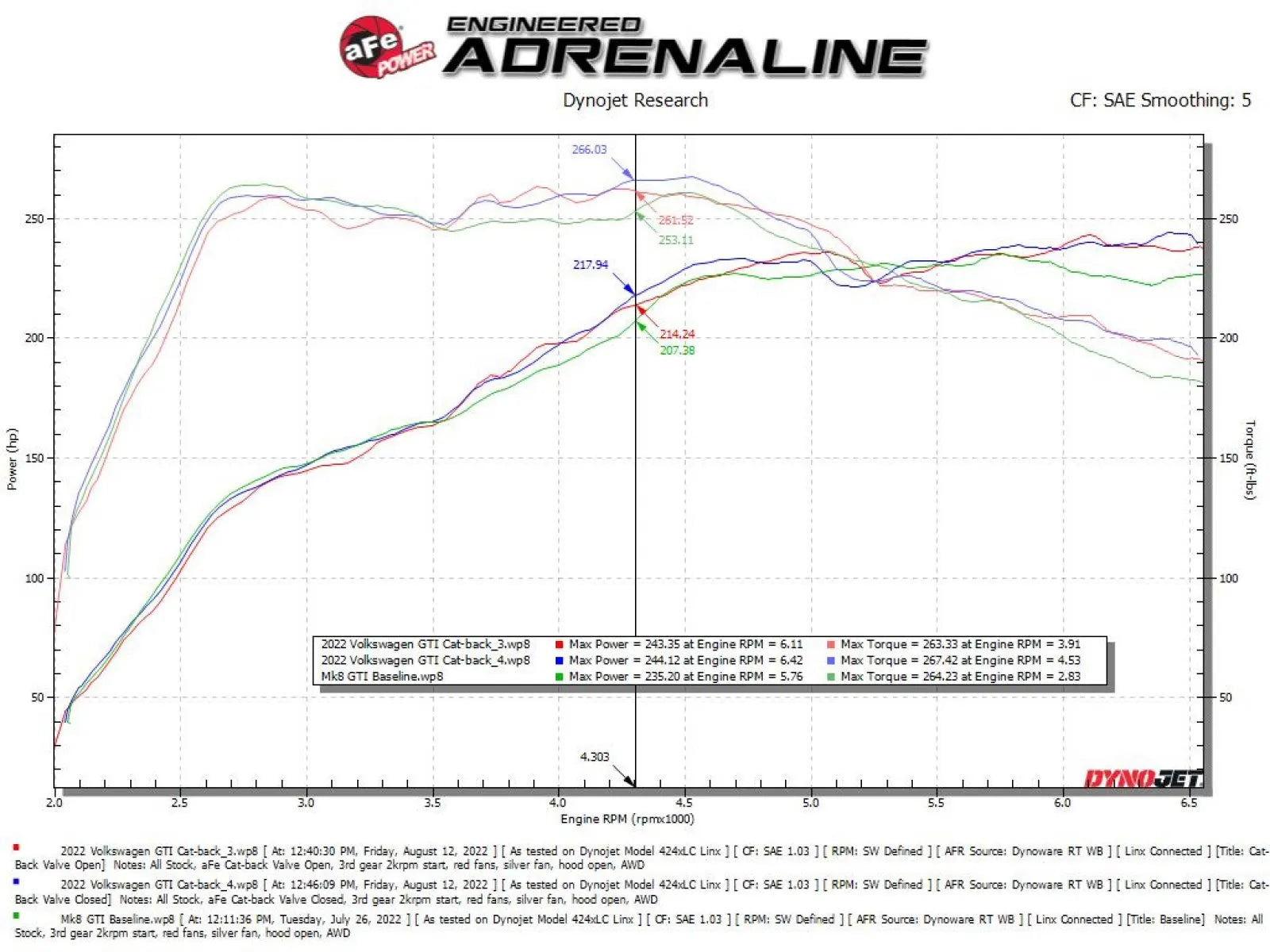 aFe Gemini XV 3in to 2 1/2in 304 SS Cat-Back Exhaust 22-23 Volkswagen GTI (MK8) 2.0L w/ Black Tips - 49-36451-B