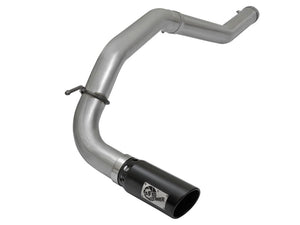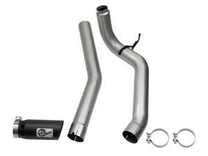 aFe LARGE BORE HD exhaust systems are constructed from mandrel-bent stainless steel tubing for maximum flow. Smooth transition bends allow for low turbulence, increasing horsepower and torque, while decreasing EGT. The 2-piece design and bayonet style hangers provide stability and for an easy installation. Finishing off the exhaust is a black, stainless steel slash cut tip with intercooling vents designed to reduce exhaust gas temperatures at the tailpipe. A unique stainless steel laser-cut aFe Power logo plate is riveted on for an aggressive style.