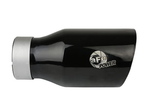 This direct-fit clamp-on tip is constructed from 304 stainless steel and features a black finish for corrosion resistance for long lasting good looks. Designed to fit 3" exhaust systems; 3" inlet x 4-1/2" outlet and 9" inch length. This tip features a laser etched aFe POWER logo for an aggressive, custom look. A high quality stainless steel clamp is used for a complete 360 degree sealing surface.