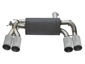 Aggressive Sound: A free-flowing, transverse muffler is used to absorb high pitch tones producing a powerful sound and unleashing all available horsepower and torque. The muffler is finished with a high-temp powder-coated black finish and a stamped aFe power logo. Exhaust Valve: This down-pipe back exhaust system incorporates a factory style exhaust valve which uses the factory exhaust valve motor (not included). The valve helps regulate, direct and control the flow of exhaust gases by opening, closing, or partially obstructing passageways depending on throttle position for maximum performance. Simple Installation: This MACH Force-Xp axle-back exhaust system uses factory mounting locations providing stability and a hassle-free installation. Quad 4" Polished Tips Finishing off this system are quad 4" diameter, polished, 304 stainless steel tips. The tips come with a laser-etched aFe power logo for an aggressive style. Leak-Free Seal: High quality band clamps are used for a complete 360 degree sealing surface. Brushed 304 SS Construction: The performance axle-back exhaust system is constructed of 3" to 2-1/2" mandrel-bent, brushed 304 stainless steel tubing for maximum performance, corrosion resistance and strength eliminating cracking. All aFe exhaust systems are engineered and manufactured in our Corona, California manufacturing facility.