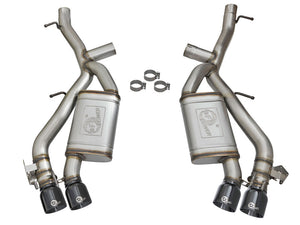 Testing: In testing, the axle-back exhaust system produced a max gain of +4 horsepower and +4 ft. lbs. of torque verified by our in house dyno. Potential for up to +24 horsepower and +27 lbs. x ft. of torque when combined with aFe's Twisted Steel street Tri-Y headers/X-Pipe (P/N: 48-34127-YC). Aggressive Sound: Dual free-flowing mufflers are used to absorb high pitch tones producing a powerful sound and unleashing all available horsepower and torque. Exhaust Valve: This axle-back exhaust system incorporates factory style NPP dual mode exhaust valves which use the factory exhaust valve motors (not included). The valves help regulate, direct and control the flow of exhaust gases by opening, closing, or partially obstructing passageways depending on throttle position for maximum performance. 304 SS Construction: The performance axle-back exhaust system is constructed of 3" mandrel-bent, 304 stainless steel tubing for maximum performance, corrosion resistance and strength eliminating cracking. Simple Installation: This MACH Force-Xp axle-back exhaust system uses factory mounting locations providing stability and a hassle-free installation. Quad Gloss Black Tips: Finishing off this system are quad gloss black, 4" diameter tips. The tips come with a laser-etched aFe power logo for an aggressive style. Leak-Free Seal: High quality band clamps are used for a complete 360 degree sealing surface. Note: This system only fits manual transmissions models without AFM valves.