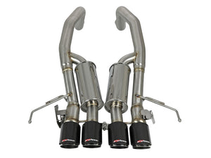Dual free-flowing mufflers are used to absorb high pitch tones producing a powerful sound and unleashing all available horsepower and torque. The performance axle-back exhaust system is constructed of 3" to 2-1/2" mandrel-bent, brushed 304 stainless steel tubing for maximum performance, corrosion resistance and strength eliminating cracking. This axle-back exhaust system incorporates factory style NPP dual mode exhaust valves which use the factory exhaust valve motors (not included). The valves helps regulate, direct and control the flow of exhaust gases by opening, closing, or partially obstructing passageways depending on throttle position for maximum performance. This MACH Force-Xp axle-back exhaust system uses factory mounting locations providing stability and a hassle-free installation. Includes quad 4" diameter, carbon fiber tips with an aFe POWER logo. This item does not incorporate the AFM vales and will not fit models equipped with them.