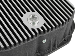 aFe Powers new deep transmission pan brings performance engineering to the protection of your trucks transmission. This transmission pan has additional capacity for 3 to 4 more quarts over stock at the factory line, a magnetic drain plug and a 1/8" NPT port for your temperature sensor. Built-in internal and external fins transfer heat from the fluid to the outside air for maximum cooling. This transmission pan is constructed out of durable die-cast A380 aluminum with reinforced ribs and a wrinkle black powder-coating for maximum strength and styling. Installation Instructions