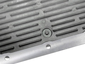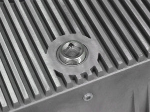 aFe Powers new deep transmission pan brings performance engineering to the protection of your trucks transmission. This transmission pan has additional capacity for 3 to 4 more quarts over stock at the factory line, a magnetic drain plug and a 1/8" NPT port for your temperature sensor. Built-in internal and external fins transfer heat from the fluid to the outside air for maximum cooling. T his transmission pan is constructed out of durable die-cast A380 aluminum with reinforced ribs and a wrinkle black powder-coating for maximum strength and styling.