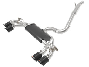 This cat-back exhaust system is constructed of 3 IN - 2-1/2 IN mandrel-bent brushed finished 304 stainless steel tubing for maximum strength and durability. This system features a stainless steel black muffler, producing a deep sound. The muffler has a black finish for ultimate corrosion resistance. The dual muffler bypass tubes are incorporated into the system to optimize sound tuning. Finishing off this exhaust system are quad 4 IN diameter carbon fiber 304 stainless steel clamp-on exhaust tips. The tips features an Fe POWER logo for a unique style. This system produces a deep sound unleashing all available horsepower and torque. Utilizing factory style hangers this system is a direct bolt-on system, which requires no cutting or modifications for a hassle-free installation. This cat-back exhaust system incorporates factory style exhaust valves which use the factory exhaust valve motors (not included). The valves help regulate, direct and control the flow of exhaust gases by opening, closing, or partially obstructing passageways depending on throttle position for maximum performance. Utilizing state-of-the-art computer-aided design technology, this exhaust system is designed for custom, high tolerance factory fitment. 100% TIG-Welded for race-proven strength and durability.