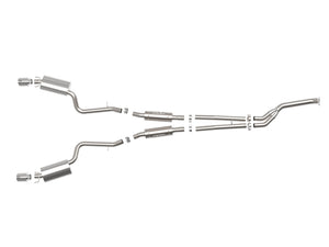 This cat-back exhaust system is constructed of 3 IN - 2-1/2 IN mandrel-bent 304 stainless steel tubing for maximum strength and durability. This system features high-flow 304 stainless steel mufflers, producing a deep sound. Finishing off this exhaust system are dual 4-1/2 IN diameter polished 304 stainless steel clamp-on exhaust tips. The tips features a laser etched Takeda logo for a unique style. This system produces a deep sound unleashing all available horsepower and torque. Utilizing a factory style flange and hangers this system is a direct bolt-on system, which requires no cutting or modifications for a hassle-free installation. Utilizing state-of-the-art computer-aided design technology, this exhaust system is designed for custom, high tolerance factory fitment. 100% MIG-Welded for race-proven strength and durability.