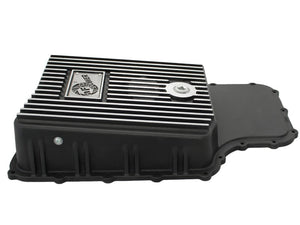 aFe Powers new deep transmission pan brings performance engineering to the protection of your trucks transmission. This transmission pan has additional capacity for 3 to 4 more quarts over stock at the factory line, a magnetic drain plug and a 1/8" NPT port for your temperature sensor. Built-in internal and external fins transfer heat from the fluid to the outside air for maximum cooling. This transmission pan is constructed out of durable die-cast A380 aluminum with reinforced ribs and a wrinkle black powder-coating for maximum strength and styling.