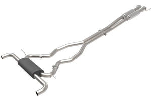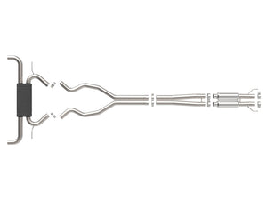 This cat-back exhaust system is constructed of 2-1/2 IN mandrel-bent 304 stainless steel tubing for maximum strength and durability. This system features a high-flow stainless steel black muffler, producing a mild sound. The muffler has a black finish for ultimate corrosion resistance. This system produces a mild sound unleashing all available horsepower and torque. Utilizing factory style hangers this system is a direct bolt-on system, which requires no cutting or modifications for a hassle-free installation. Utilizing state-of-the-art computer-aided design technology, this exhaust system is designed for custom, high tolerance factory fitment. 100% MIG-Welded for race-proven strength and durability.