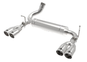 2-1/2" 304 Stainless Steel Construction: This axle-back exhaust system is constructed of 2-1/2" mandrel-bent 304 stainless steel tubing for maximum strength and durability.High-Flow 304 Stainless Steel Muffler: This system features a high-flow 304 stainless steel muffler, producing a deep sound. Quad 3-1/2" Diameter Polished Exhaust Tips: Finishing off this exhaust system are quad 3-1/2" diameter polished stainless steel clamp-on exhaust tips. The tips features a laser etched aFe POWER logo for a unique style.Installation: Utilizing factory style hangers this system is a direct bolt-on system, which requires no cutting or modifications for a hassle-free installation.Computer-Aided Design: Utilizing state-of-the-art computer-aided design technology, this exhaust system is designed for custom, high tolerance factory fitment.MIG-Welded: 100% MIG-Welded for race-proven strength and durability.Emissions Disclaimer: This product does not require a CARB EO#.aFe POWER exhaust systems are engineered and manufactured in our Corona, California facility.