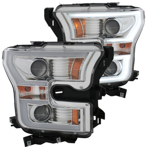 ANZO 2015-2016 Ford F-150 Projector Headlights w/ Plank Style Design Chrome w/ Amber - 111348