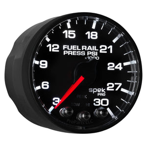 Autometer Spek-Pro Gauge Rail Press 2 1/16in 30Kpsi Stepper Motor W/Peak & Warn Blk/Blk - P321328