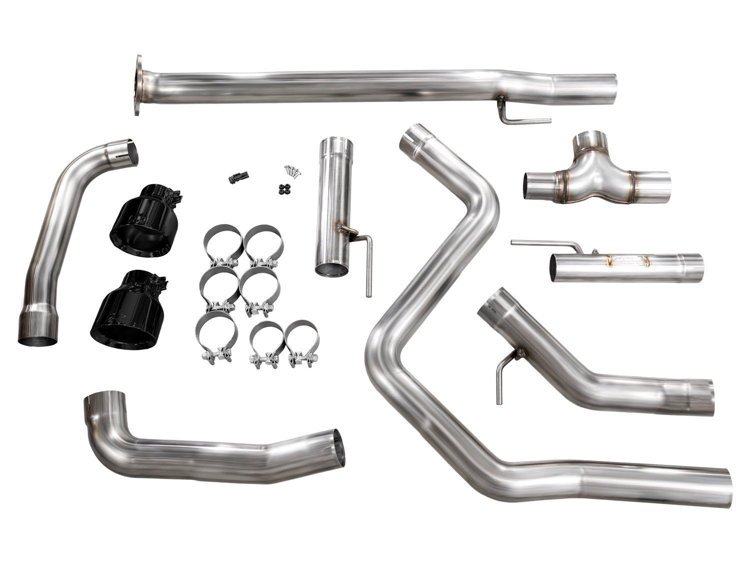 Smooth bends, tight packaging, and two attitudes. The SwitchPath™ Exhaust is comprised of primarily 3-inch U.S-sourced T304L stainless steel featuring a 3” valved passenger-side tip outlet and a 2.5” driver-side outlet with tailored resonator.