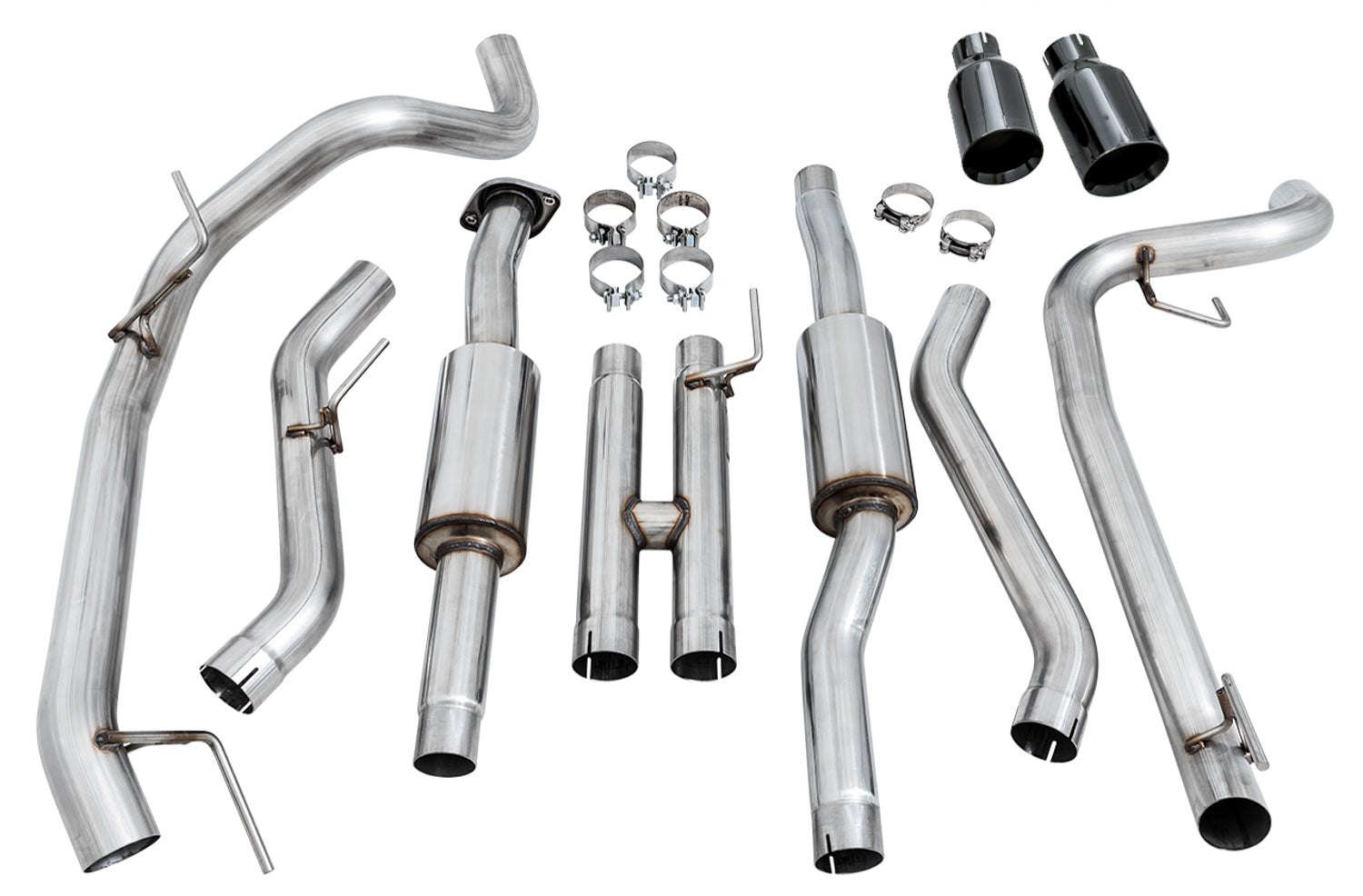 The 0FG Exhaust is the combination of 2FG and 1FG configurations, finished off with dual 3” T304L stainless steel tail pipes, and 5” double-walled AWE exhaust tips in a signature Diamond Black finish. The result is a unique soundtrack tailored perfectly for the Raptor that comes to life under boost while remaining civil in and out of the cabin at cruising speeds. The AWE 0FG configuration provides a weight savings of 41 lbs total. The AWE 0FG Exhaust features 5” double-walled straight-cut tips in a Diamond Black finish, complete with AWE logo. Each tip is individually adjustable, allowing bumper depth to be set according to personal taste. This is how we truck. Important fitment notes: The AWE Exhaust Suite for the Gen 2 Raptor is applicable to both SuperCab and SuperCrew models. Adapters for SuperCrew models are included with each AWE 2FG, 1FG, and 0FG Exhaust.