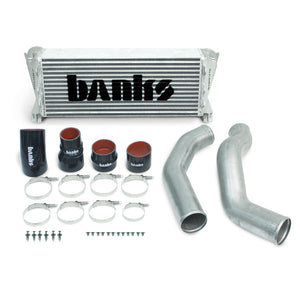 Cooler EGTs, more MPG and constant-duty power. Steady power output even under extreme temperatures. Flows 48 percent better than stock. Allows for a calculated +27 hp and +51 lb-ft. High-efficiency custom-machined durable cast end tanks with wide-open inlet and outlet. Includes mandrel-bent high-flow boost tubes - large, high-efficiency all-aluminum end tanks and all necessary hardware.Superior to Stock: Everything about Banks Intercooler Intercooler System is designed bigger and better. This upgrade kit includes a set of high-flow boost tubes and a Banks designed intercooler solution.The Banks Boost Tubes feature over sized mandrel-bent pipes matched to the increased performance design of the new intercooler. The Banks designed intercooler has a thicker core to improve cooling area and volume, while its large high-efficiency all-aluminum end tanks and wide-open inlet / outlets maintain peek performance. The Banks Intercooler dramatically increases the engines cooling capacity and power potential by balancing a richer fuel mixture with cooler, denser, improved airflow.Result: You get higher continuous power and more power at any exhaust gas temp (EGT), with better fuel economy, and lower EGTs. That's a truckload of benefits! It doesn't get any cooler than Intercooler! Mounting hardware included. Banks is Breaking B.A.D.!Turbos and intercoolers are Density Machines, so when you increase Boost Air Density, “BAD†is very good for power. After 58 years, the crew at Banks is damn good at making BAD, and the numbers don't lie! When you compare the new Banks Intercooler for the Ram 6.7L to stock and aFe, you can clearly see why Banks is better.