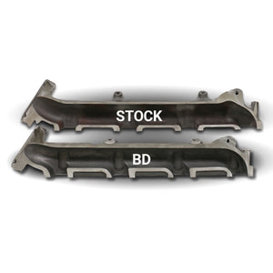 BD focused on solving one of the Ford 6.7L common failures, the exhaust manifolds. Crafted with a heavy duty 0.275 in. thick-walled Hi-Silicon ductile casting, this makes these manifolds 75% thicker to combat cracking due to high exhaust temperatures. Thermal durability has been improved with longer exhaust studs and spacers plus thicker, more durable machined bolting flanges. Fully EGR compatible, BDs exhaust manifold set is the perfect replacement for reliability and peace of mind.