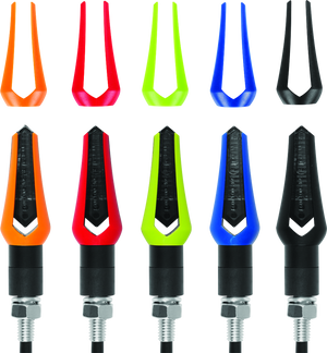 BikeMaster® Dagger Turn Signals are constructed from a durable plastic housing, two Amber LEDs and covered with a smoke lens. Ultrasonic welded, with a short stem and an 8mm mount bolt. Includes black, blue, red, green and orange covers that can be interchanged for a customized look.