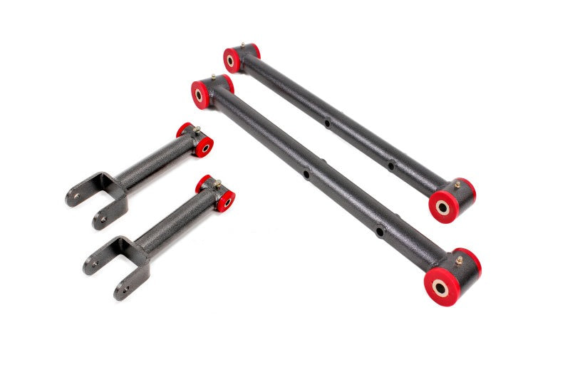Launching harder, reducing wheel hop, and adding cornering consistency to your 1968-1972 GM A-body is easy with a Rear Suspension Kit from BMR Suspension. Stock stamped steel control arms with soft rubber bushings deflect under load and absorb power instead of transferring it to the tires. BMR?s polyurethane, non-adjustable Rear Suspension Kit (RSK011) consists of upper and lower control arms for early A-bodies. Manufactured from heavy-duty 1.50-inch diameter, 0.120-inch wall DOM steel tubing, the lower control arms provide all the strength you?ll need for any performance application. The upper control arms are manufactured from 1.625-inch diameter, 0.120-inch wall DOM steel tubing, strong enough for any compression load. Greasable, 95-durometer polyurethane bushings add a solid, more responsive feel over the stock rubber bushings. BMR?s bushings are internally fluted, which keeps grease in the bushing, even under heavy load. These flutes also direct grease to the outer edge of the bushing, keeping the thrust surface lubricated. This efficient lubrication ensures quiet, reliable operation over the life of the bushings. Application Guide