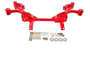 Reduce weight, increase frontend rigidity, and add clearance for large-tube headers and turbo kits with a Tubular K-members from BMR Suspension. BMR Tubular K-Members are designed to provide a lightweight alternative to the heavy and bulky factory K-member. Manufactured from 1-1/2-inch x 0.120 wall DOM steel tubing and 3/16-inch laser cut, CNC-formed steel plate, BMRs K-members give you a lightweight, extremely strong K-member. Every BMR K-member is 100-percent bolt-in and requires no modifications for fitment. The K-members are built with provision for either factory or manual steering racks.Designed for street performance, drag race, and road race applications, BMR Suspensions Tubular K-members drop weight and add loads of structural rigidity. The unique K-member design feature integrated engine mounts that weigh significantly less than factory engine mounts. This additional weight reduction allows BMR to use larger diameter tubing and thicker mounting plates for additional strength over other companies K-members. When combined with BMRs lower A-arms, a minimum weight reduction of over 30 pounds is common. With other lightweight frontend parts, weight reduction of up to 100 pounds is easily achievable.BMR Suspensions KM006-1 Tubular K-Member is available in black hammertone and red powdercoat for long-lasting good looks. Installation time is about 4-5 hours. Proudly made in the U.S.A.!NOTE: Not compatible with OE lower control arms.