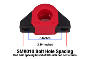 If you?ve installed one of BMR Suspension?s 1 3/8-inch sway bars or Xtreme Anti Roll Bars and want to improve its level of body roll control, upgrade the sway bar mounts and bushings with a Billet Aluminum/Polyurethane Sway Bar Mounting Kit from BMR Suspension. Most BMR sway bars come with formed steel sway bar mounts with polyurethane bushings. This gives you an effective sway bar mounting solution that works great for limiting the amount of wasted sway bar rate due to sway bar bushing deflection. Under extreme loads, slight bushing saddle deflection can absorbs sway bar rate and allow for slight amounts of body roll. BMR designed its Billet Aluminum/Polyurethane Sway Bar Mounting Kit to reduce saddle and bushing deflection. Reducing this deflection will reduce body roll and increase handling and launch consistency.