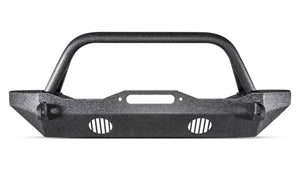 Upgrade your vehicle with our mid-width design accessory, providing ample clearance for larger tires. Constructed from 3/16? steel plate with a reinforced winch tray, it ensures durability and strength. The two-stage powdercoat heavy texture finish in black adds a sleek, rugged look. This accessory features two welded D-ring mounts and supports a 10,000lbs winch capacity, compatible with WARN ZEON winches. It fits LED style cube lights but does not fit OE fog lights. For added protection, an optional skid plate (JK-5123) is available. Enhance your vehicle's performance and style with this robust addition.
