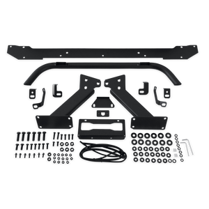 Introducing our rugged front bumper, constructed from 3/16? steel plate for exceptional durability. The bolt-on bull bar includes provisions for a 20" double row light bar or individual lights, offering versatile lighting options. This bumper can accommodate up to a 5500 lb winch, making it ideal for recovery operations. It features a bolt-on skid plate that accommodates O.E. plastic or most aftermarket skid plates, ensuring comprehensive protection. Integrated shackle recovery points provide additional functionality for off-road adventures. Finished with a durable two-stage light textured black powder coat, this bumper is built to withstand the toughest conditions. Backed by a 3-year finish warranty and a limited lifetime warranty, it guarantees long-lasting quality and performance. Perfect for those seeking both strength and versatility, this bumper is the ultimate upgrade for your vehicle.