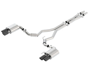 WITHOUT Active Valve Exhaust. NOT recommended for use on Convertibles. 3" diameter system. System contains a merge X-Pipe for increased performance and improved sound. This system features a black chrome finish on T-304 stainless steel tips. Using BORLA(r) Stainless Steel Polish p# 21461 is NOT recommended with these black chrome tips. We suggest cleaning the tips with hot water and a microfiber cloth. BORLA(r) Cat-Back(tm) and Axle-Back exhaust systems feature patented straight-through and multi-core technology designed to unleash hidden horsepower. Increased exhaust velocity adds power, driving excitement, fuel economy, and the distinctive BORLA(r) Sound of Power respected by motoring enthusiasts everywhere. Each system is built from premium T-304 stainless steel, superior to T-400 series knockoffs (such as 409), to give you the absolute best in performance and durability. Ultra-smooth mandrel bends ensure maximum flow& power, and precision computer-controlled CNC manufacturing ensures an accurate fit. Best of all, BORLA(r) stands behind every system with a Million-Mile Warranty. Just what you'd expect from the world's most experienced (and most winning) exhaust brand.