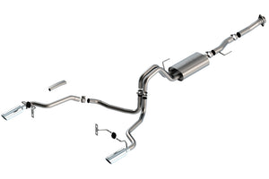 The Borla(r) Cat-Back(tm) system 140868 was specifically designed to enhance the power and sound of the Ford F-150 equipped with the 5.0L V8 engine. It includes bright chromed T-304 stainless steel tips and a split rear exit configuration. The entire system is made of T-304 stainless steel and utilizes computer numerical control (CNC) manufacturing techniques that ensure an accurate fit. This system features the "S-Type" sound that gives you a mild sound of power with no drone. It is also available with black chromed tips (part number 140868BC). There are additional systems available for the 5.0L F-150 that offer different options for sound level, tip finish and tip exits. All this is backed by our unsurpassed Million Mile Warranty., System Features:, Cat-Back(tm) System, Split Rear Exit, Bright Chrome On T-304 Stainless Steel Tips, S-Type Sound Level, T-304 Stainless Steel Construction, Bolt-On Installation, Million Mile Warranty