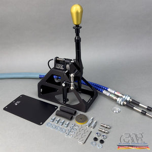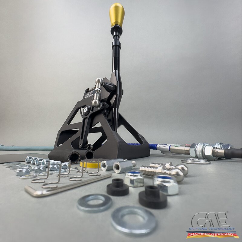 Scope of delivery: Shifter fully assembled, cover plate for tunnel opening, CAE HD shift cables, all screws and small parts.