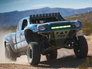 When we designed our spring-under kit for the 2005-2023 Toyota Tacoma’s we wanted to take the guess work out and make a kit that’s easier to install. We did this by designing the front and rear spring hangers to bolt to the frame using the existing holes used by the factory mounts that are riveted on. Our mounts are considerably stronger than weld-on versions and we incorporated tabbing on the rear mounts for a x-member or fuel cell cradle for even more strength. This race and BITD 7100 class championship winning kit has been used over the years on serious prerunners and race trucks in the deserts of California and as far as the Dakar rally. A limited travel variation of this kit was also used on the 2017 Tacoma we raced in the 2017 Mint 400 in the 7300 class. This suspension kit is for the serious builder/enthusiast and is intended to be used with a bed cage and 2.5-3.0 x 16-18? travel shocks through the bed along with FOX or King bump stops. Their is quite a bit of work involved with installing these parts and is not an entry level install. Leaf springs are not included.