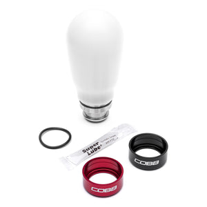 The Tall Weighted COBB Knob is designed to keep those extended shifting sessions exhilarating. The billet stainless steel base/insert provides a weight similar to OEM knobs and is internally threaded to provide a tight fit onto the shifter which won't come loose in the most frenzied of gear changes. The delrin upper section ensures comfortable gear changes in the most extreme climates. Both Race Red and Black lower trim rings are included. This knob weighs in at 325g. Spin on a COBB Knob and go for a ride!