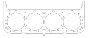 Comprised of multiple embossed layers of stainless steel with the outer layers utilizing a Viton rubber coating. Compressed operating thickness is 0.066". With Steam Holes. Cometic MLS (Multi-Layer Steel) Head Gaskets provide maximum sealing performance for todays high output engines and require no sealants. MLS gaskets are ideal for both aluminum heads to aluminum blocks and aluminum heads to cast iron blocks. They can withstand the shearing force created by the two materials. MLS gaskets have increased strength because they are comprised of multiple layers of stainless steel; which also creates the ability to rebound and resist corrosion. The outer layers are embossed and coated on both sides with Viton (a flour elastomer rubber based material that is heat resistant to 250 C/ 482 F). Viton is designed to meet the demands of a variety of harsh sealing environments, load conditions, and surface finishes. The center or shim layer is uncoated stainless steel, which can be varied to accommodate multiple thickness requirements.