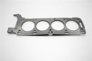 Comprised of multiple embossed layers of stainless steel with the outer layers utilizing a Viton rubber coating. Compressed thickness is 0.030". Left hand side. Cometic MLS (Multi-Layer Steel) Head Gaskets provide maximum sealing performance for todays high output engines and require no sealants. MLS gaskets are ideal for both aluminum heads to aluminum blocks and aluminum heads to cast iron blocks. They can withstand the shearing force created by the two materials. MLS gaskets have increased strength because they are comprised of multiple layers of stainless steel; which also creates the ability to rebound and resist corrosion. The outer layers are embossed and coated on both sides with Viton (a flour elastomer rubber based material that is heat resistant to 250 C/ 482 F). Viton is designed to meet the demands of a variety of harsh sealing environments, load conditions, and surface finishes. The center or shim layer is uncoated stainless steel, which can be varied to accommodate multiple thickness requirements.