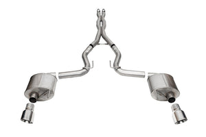 CORSA's 2024 Mustang GT exhaust collection has arrived! CORSA's 3.0 in. cat-back exhaust collection features 304 stainless steel construction and custom tuned mufflers engineered specifically for 7th Generation Mustang Coyote V8 engine. The Sport cat-back system includes CORSA's Double Helixx X-Pipe and has been engineered to unleash moderately aggressive exhaust notes (8 decibels louder than stock) that will turn heads at cold start and under heavy acceleration while maintaining a quiet drone-free cabin at cruise courtesy of CORSA's best-in-class No DRONE RSC(R) technology. Featuring a straight through muffler design, CORSA's exhaust increases flow by 46% allowing drivers to maximize the benefits of any performance modification. Aesthetically the system amps up style by featuring impressive 4.5 in. dual wall stainless steel exhaust tips available in slash cut, straight cut or carbon fiber. Simply put "Nothing Compares" to CORSA's American Made seventh generation Mustang S650 exhaust system. CORSA Performance exhaust systems are engineered and made in Berea, OH and backed by a Lifetime Warranty.