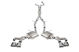 Corsa's Cadillac CT5-V Blackwing cat-back exhaust will give your Blackwing the sound it deserves! The system integrates flawlessly with the stock Cadillac Active Exhaust valve assembly giving the driver full control over the driving experience. Simply choose the driving mode you prefer and Corsa's exhaust system responds by quieting down or unleashing the exhaust system. Featuring Corsa's No Drone RSC(R) Technology this system has been custom tuned for the Cadillac 6.2L LT4 engine creating the perfect tone for this car. The cat-back system features Corsa's 3.0 in. double X-pipe which elminates the stock crushed piping near the rear axles helping to increase flow and performance. Corsa cat-back exhaust systems are engineered and manufactured in the USA and are backed by a Limited Lifetime Warranty