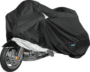 Heavy-duty, top of the line, all-weather cover from CoverMax® by BikeMaster® that is designed specifically for trikes. Waterproof seams, 300-denier polyester with PU coating. Ultra-soft 30g velour lining helps protect paint from scratches. Two top covered vents improve ventilation and help reduce condensation build up. Vent covers are reflective for added visibility and security. Convenient access panel without removal of cover. Windshield liner helps protect windscreen from scratching. Extra-wide tail slot accommodates multiple radio antennas. Tailor-fit elastic skirt and adjustable hook-and-loop center strap helps secure the cover and gives a custom style fit. Built-in grommets for use of security cable lock (cable lock not included). Available for metric or Harley-Davidson® trikes and/or Spyder roadster.