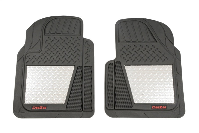 Dee Zee Floor Mats - Protects the interior of your vehicle. Constructed of thick, tough, and durable OEM-style rubber - with Brite-Tread aluminum center. Deep groves hold water, mud, and snow - keeping it away from your vehicles interior. Raised pattern to increase traction. Rubber cleats on bottom keep mat in position. Sold in pairs. Universal fit - trim-able design to fit nearly any vehicle.
