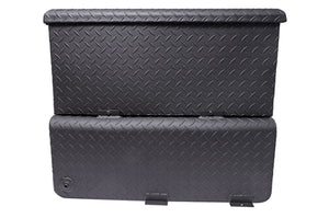 Dee Zee Combo Tanks - The convenience of a utility chest connected to a liquid transfer tank. Constructed of heavy duty .125 Brite-Tread aluminum. Radius curve design eliminates key weld pressure points. Aluminum is durable light weight and eliminates the worry of rust. Tanks feature stability baffles, 3/8 in. drainage plug. Tool box offers lockable storage with high quality stainless steel paddle handles and features gas shocks. Coated with NRT(TM) (No Rust Technology) black powder coat for optimal ruggedness and resistance against corrosion.Tanks are intended for private use (non-commercial). Not designed for use as an auxiliary fuel system. Not designed for use as an auxiliary fuel system. Does not meet title 49 of the United Stated Federal Registry governing transportation.