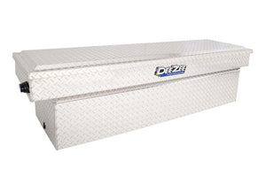 Dee Zee Tool Box - Blue Label (Contractor Grade) Single Lid Crossover. Constructed of heavy gauge Brite-Tread aluminum. Large push button with self-adjusting latches. Hidden hinge, gas shocks, Alumaguard strengthening channel, and adjustable strikers on a hat style lid. Installation Instructions