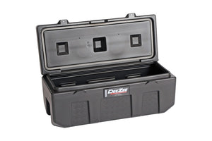 Dee Zee Tool Box - Plastic poly utility chest. Constructed of strong yet lightweight plastic. Built to add quick storage wherever you need it. Truck, trailer, boat, dorm room, garage, barn, workshop or anywhere else you can use storage. Molded cup holders on lid provide convenience. Foam gasket around lid helps makes box weather resistant. Built in locations on lid accept your pad lock for security (pad locks not included).