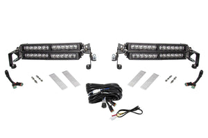 Designed for racing. The Motorsports LED Light Bar Kit from Diode Dynamics allows you to mount up to four SS12 Stage Series 12" Light Bars or SS18 Stage Series 18" Light Bar on the hood of your vehicle. The whole kit includes everything needed for installation and uses stainless steel hardware for long lasting durability, including custom-made stainless rubber bumpers, which absorb vibration and prevent any damage to the hood. These purpose-built brackets were CAD-designed to provide the performance you need to Go Faster, and See Further.