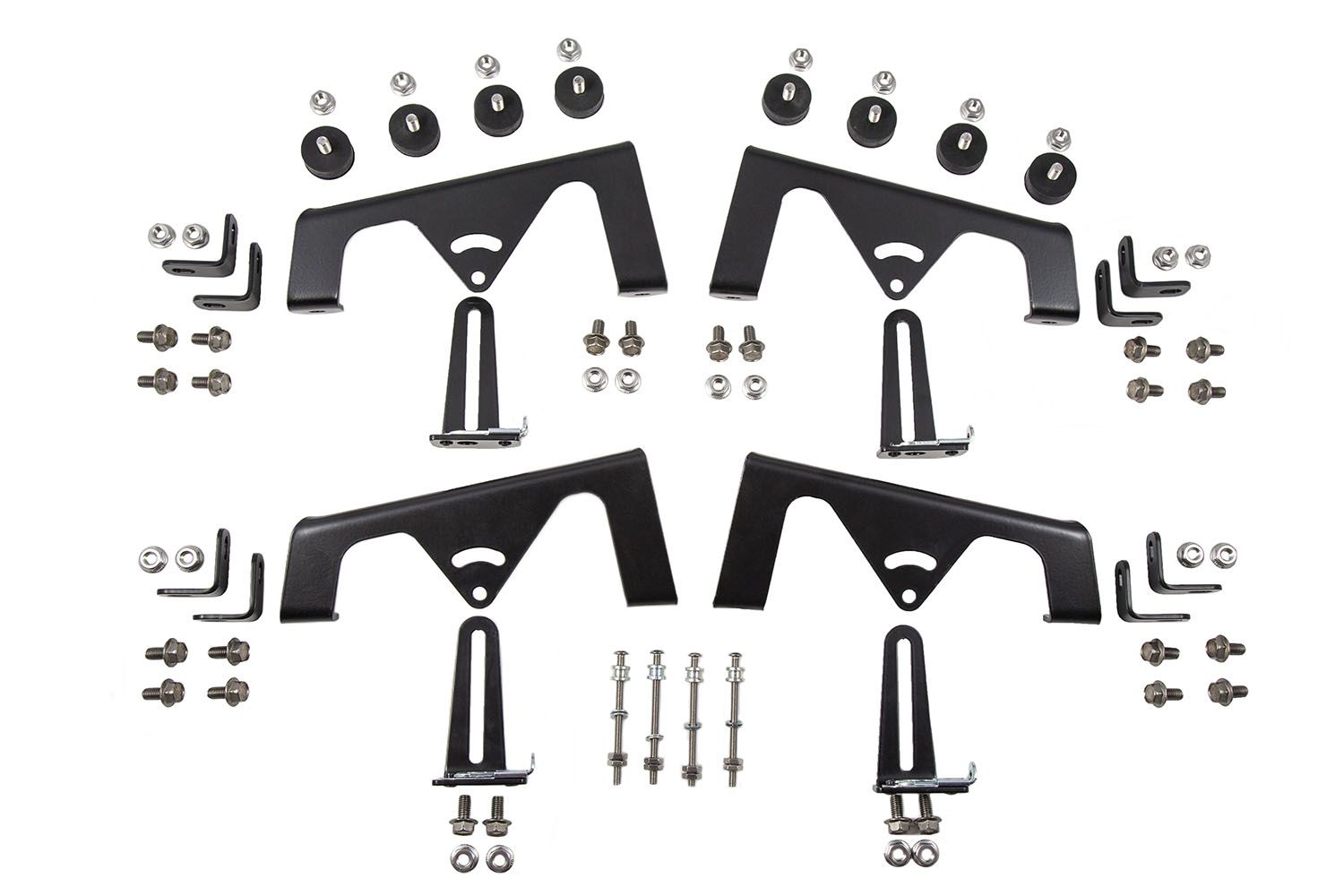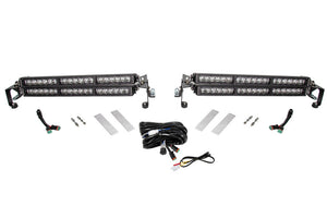 Designed for racing. The Motorsports LED Light Bar Kit from Diode Dynamics allows you to mount up to four SS12 Stage Series 12" Light Bars or SS18 Stage Series 18" Light Bar on the hood of your vehicle. The whole kit includes everything needed for installation and uses stainless steel hardware for long lasting durability, including custom-made stainless rubber bumpers, which absorb vibration and prevent any damage to the hood. These purpose-built brackets were CAD-designed to provide the performance you need to Go Faster, and See Further.