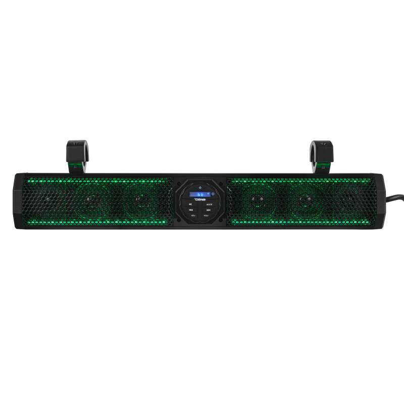 The SB26BTXRGB 600-Watt Soundbar delivers powerful, marine-grade audio that's built for the outdoors. Includes Bluetooth®, USB and Aux inputs, plus five EQ presets to fit a wide range of applications and provide that custom sound. Built- in RGB LED lighting adds a vibrant pop of color, setting the mood for every ride or adventure.