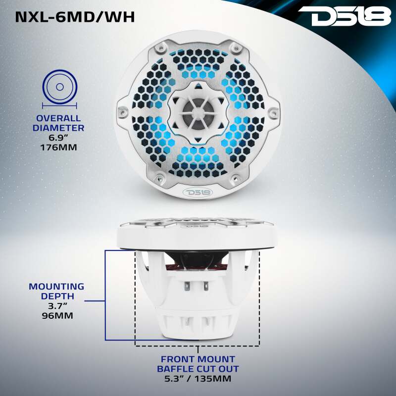 DS18 Hybrid Marine Speaker w/ Driver And RGB LEDs 6.5in 2-Way 250 Watts RMS 4 ohm White w/ Covers - NXL-6MD/WH